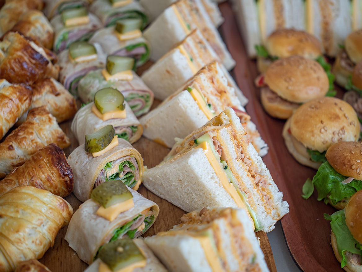 If you have leftovers, store them in an airtight container in the refrigerator for up to 3 days. The croissants may become slightly stale, but they can be refreshed by placing them in a preheated oven for a few minutes. The ham-and-cheese rolls and triangular sandwiches can be stored separately to maintain their texture.
