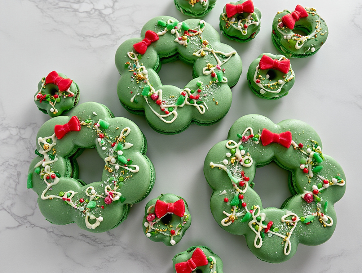 There’s something undeniably magical about a holiday dessert that sparkles with festive cheer. These festive green wreath macarons are the perfect embodiment of holiday joy—crafted with emerald-green meringue shells, crowned with ruby-red bows, and dusted with iridescent white sprinkles. Whether you’re hosting a Christmas gathering or simply craving a sweet treat, these macarons will elevate your dessert table with their elegant charm. Let’s dive into how to create these show-stopping confections that taste as good as they look.